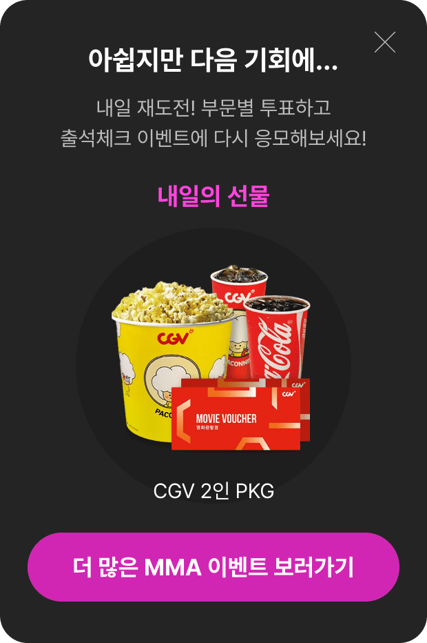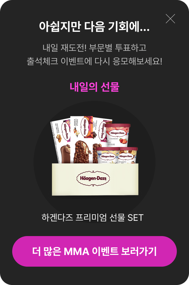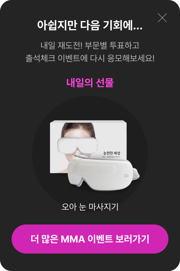 부문별 투표하고 출석체크하면 매일 MMA 초대권과 즉석당첨 선물이!