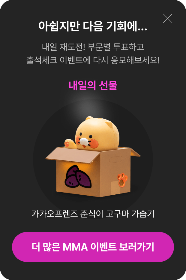 내일 재도전! TOP10 투표하고 출석체크 이벤트에 다시 응모해보세요!