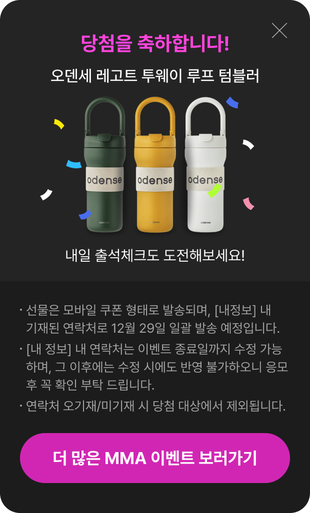 경품 1. MMA2025 초대권 (1인 1매)<br>경품 2. 오덴세 레고트 투웨이 루프 텀블러
