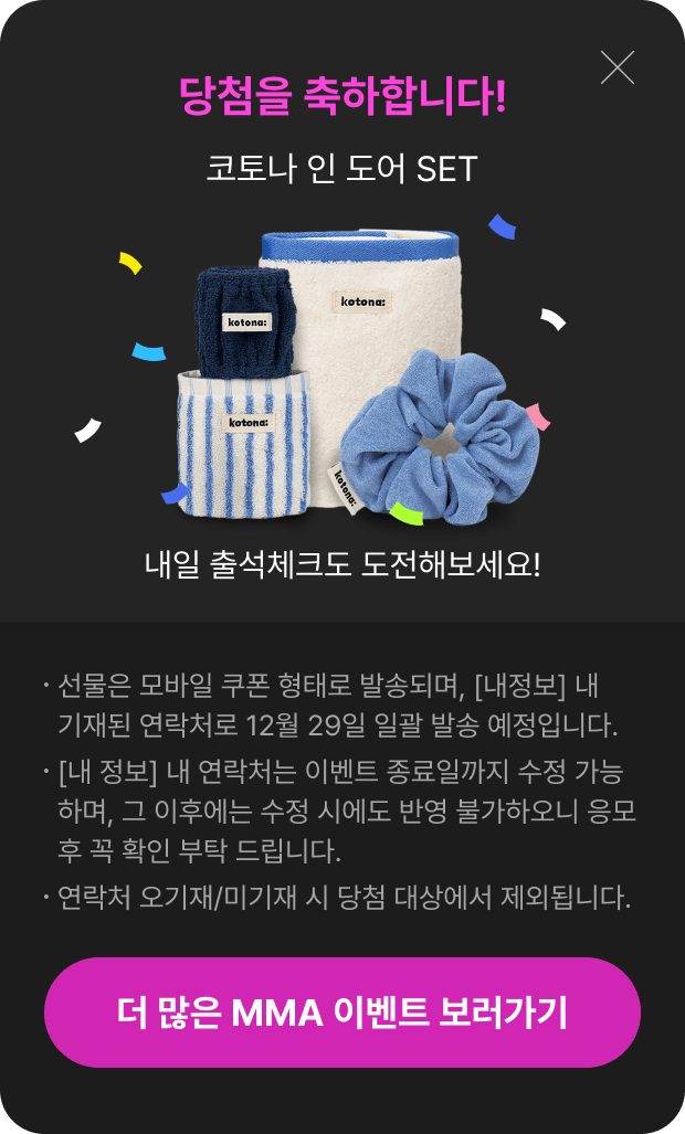 내일의 선물 경품 1. MMA2025 초대권 (1인 1매)<br>경품 2. 코토나 인 도어 SET