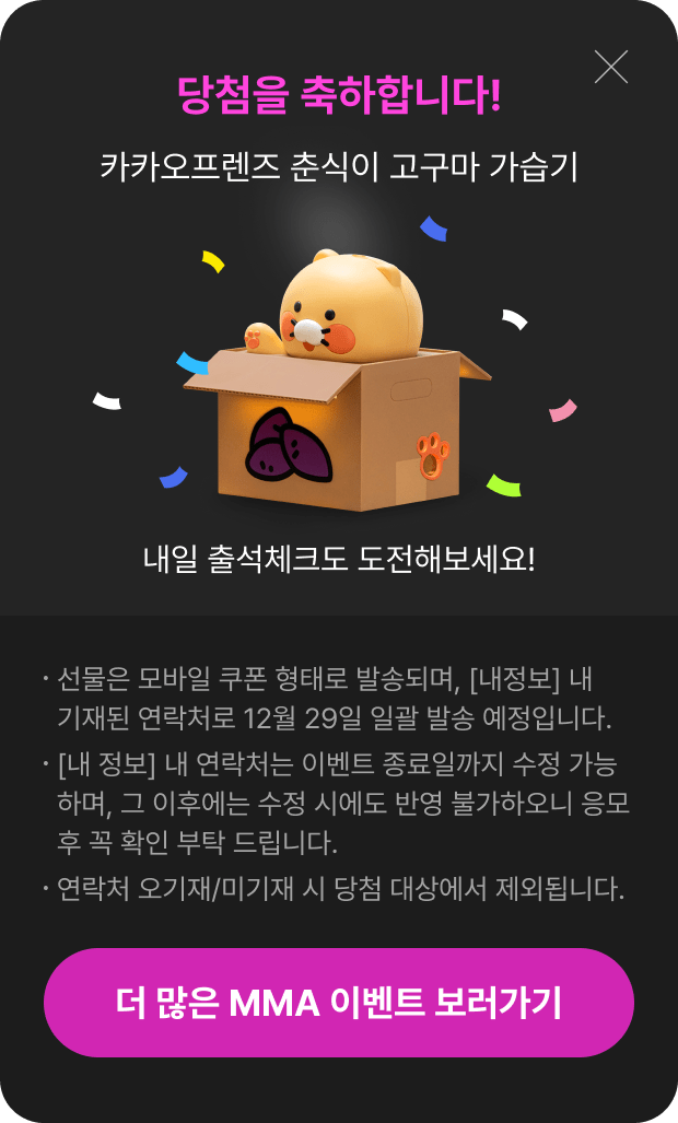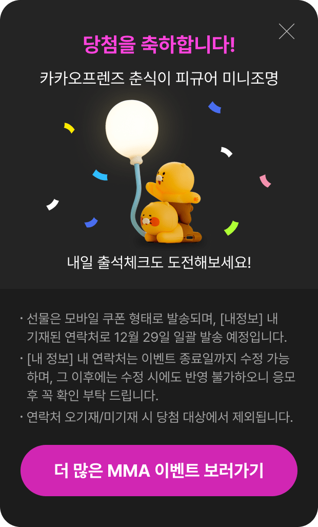 경품 1. MMA2025 초대권 (1인 1매)<br>경품 2. 카카오프렌즈 춘식이 피규어 미니조명