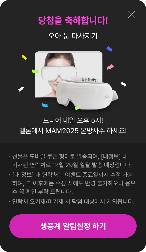 - 당첨 안내를 위해 [내 정보]에 입력하신 연락처로 SMS 문자 발송 예정이며, 연락처 오기재/미기재 시 당첨 대상에서 제외됩니다.